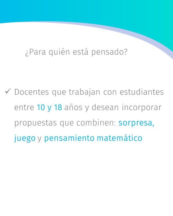 Docentes que trabajan con estudiantes entre 10 y 18 años y desean incorporar propuestas que combinen asombro, juego y pensamiento matemático.