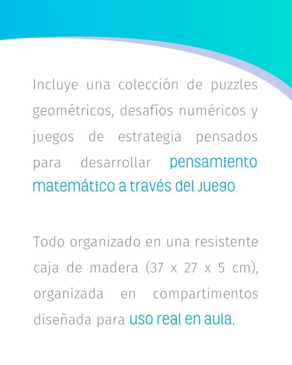 No es solo una caja de juegos, es un recurso ideal para jornadas y proyectos institucionales que buscan fortalecer el pensamiento matemático desde un enfoque activo y manipulativo.
